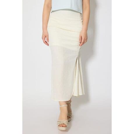 【着る人を選ばない美シルエットのマーメイドスカート】■ポイントギャザーデザインが可愛いマーメイドスカート。カットソー裏地を使用しストレスフリーな着心地もポイントです。■ディテールストレッチ性のある素材を使用し体のラインが綺麗に見えるディテールに拘り、ギャザーから流れる様に裾に繋がるサイドのラッフルとスリットが女性らしいシルエットになっています。■スタイリング簡単にTシャツを合わせたり、ニットトップス、ブラウス合わせがおすすめ◎■生地透け感:なし裏 地:あり伸縮性:あり光沢感:なし厚 さ:薄手[注意事項] ※画像の商品はサンプルです。実際の商品と仕様、加工が若干異なる場合があります。 ※画像の商品は光の照射や角度、お使いのモニター環境により、実物と色味が異なる場合がございます。 ※着用、お取り扱いの際は、アテンションタグをご確認ください。