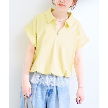 襟付きハーフジップトップスのカジュアルな印象の中に程よい甘さがあり、女性らしく着られるレース使いが魅力のアイテムです。いつものスタイリングに新鮮さをプラスしてくれ、一枚で簡単にレイヤードスタイルが完成します。