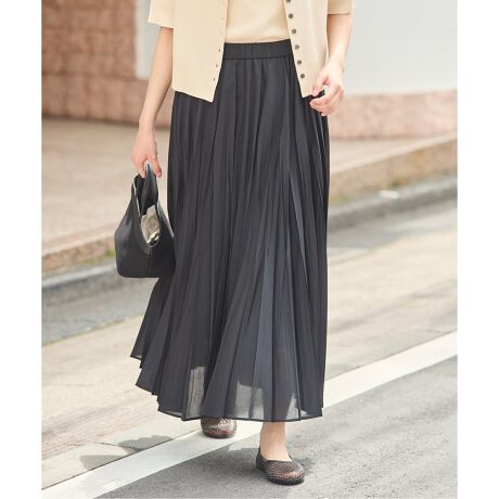透け感のあるラフなプリーツが爽やかに風に揺れるロングスカート。