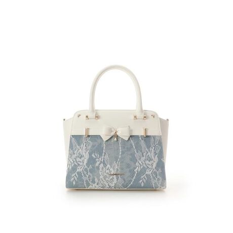 デニム調アクセントリボンハンドバッグ