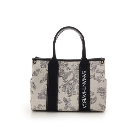 ◇SAMANTHAVEGA(サマンサベガ)のロゴテープジャガード調トートバッグ(小)サマンサベガのロゴテープジャガード調トートバッグ(小)大人気ロゴテープコレクションより、立体感があり大人っぽいジャガード調のデザインが登場です。▽デザイン・大人っぽいジャガード調の生地は季節問わずご使用いただけます。・フロントにあしらったSAMANTHAVEGAのロゴがキャッチーでポイントです。・ジャガード調の生地と配色にこだわったコレクションはモードにもカジュアルなスタイリングにも◎▽機能性・ショルダー付きで2WAYで使用可能です。・内装は薄マチポケット付き。サイドにもポケットが付いていて、小物も収納しやすいです。・幅広めなショルダーなので、長時間使用しても安心◎【対応しているもの】・ペットボトル500ml・長財布