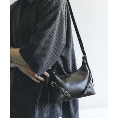 Tシャツにデニムといった等身大のカジュアルスタイルにさらりと合わせるだけで、一気にこなれた印象に仕上がります。モードなスラックスやセットアップスタイルの外しとして取り入れるのもおすすめ。ショルダーの長さを調整して、短めに肩掛けする旬のスタイルも楽しめます。