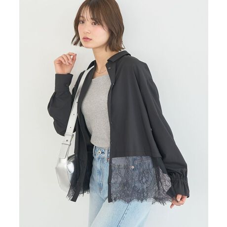 異素材の魅力が引き立つ、軽やかレースデザインなめらかなシャツ生地とやわらかなレースをドッキングしたデザインが、上品で女性らしい雰囲気を演出します。裾からほんのり透けるレースが軽やかさをプラスし、コーディネートに抜け感を生み出します。ベーシックなカラー展開で取り入れやすく、さまざまなスタイルに自然となじみます。ゆったりとしたフォルムが動きやすく、長時間の着用でも快適です。デイリーからお出かけまで幅広く活躍し、季節の変わり目にも重宝します。シンプルながらも着映えする、頼れる一枚です。透け感[なし]