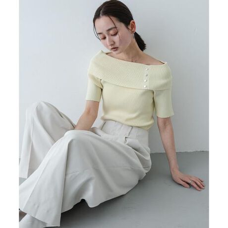 計算されたリブのラインが、体のシルエットをすっきりと綺麗に見せてくれます。絶妙なオフショル加減は、等身大の自分らしさを大切にしたい大人の女性にぴったりです。春夏のデイリースタイルを、一枚でぐっと華やかにアップデートしてくれます。