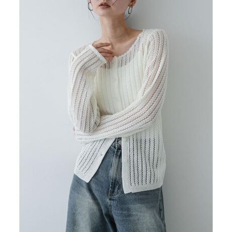 【繊細な編み地が描く、軽やかな抜け感。長袖でも重たく見せない、透かし編みシルエット】