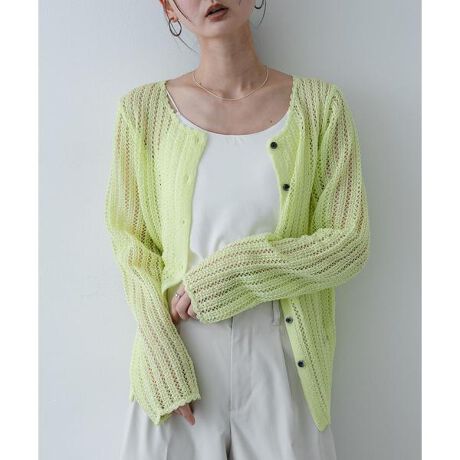 夏の日常に涼やかなニュアンスを添えてくれる、主役級のニットカーディガン。丁寧に編み立てられた透かし柄が、着こなしに奥行きと上品な抜け感を与え、洗練されたムードを引き立ててくれます。冷房の効いた室内での温度調節や、外出時の日除けとしても重宝する便利な一枚。ボタンを閉じてプルオーバーのように着こなしたり、肩にさらりと掛けたりと、シンプルだからこそ自由なアレンジで「今」の気分を楽しめる一着です。