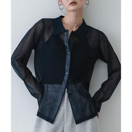 リネン特有のナチュラルな風合いと、シアーな素材感が重なり、纏うだけで自分らしい洗練されたムードを演出してくれます。カーディガンとして羽織るのはもちろん、ボタンを閉じてプルオーバーのように着こなしても、襟付きのデザインが顔周りを凛と引き締めてくれるのが魅力。肌離れの良いドライな質感は、日差し除けや冷房対策としても重宝し、日常のあらゆるシーンを心地よく彩ってくれる頼れる一品です。