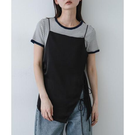 日常のコーディネートに、さりげない華やぎと個性を添えてくれる主役級のキャミソール。流れるようなサテンの落ち感と、サイドで結ばれたリボンのコントラストが、立ち姿をより印象的に引き立ててくれます。あえて左右のバランスを崩したデザインは、シンプルに纏うだけでこなれたムードを演出。シアートップスの中に忍ばせて質感を透かせたり、ジャケットのインナーからリボンを覗かせたりと、自由なアイデアで「今」の空気感を楽しめる一品です。