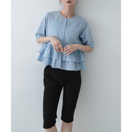 ・裾にあしらわれた二段のフリルは、広がりすぎない程よいボリュームに。甘さをほどよく削ぎ落とし、カジュアルな着こなしにもスマートに馴染みます