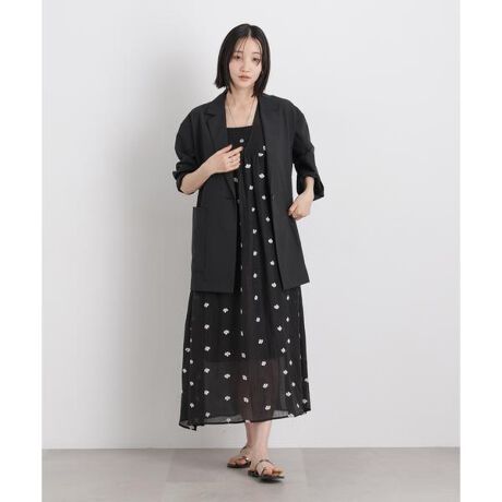 透け感のある軽やかな素材と、裾に向かって広がるフレアシルエットが女性らしさを惹き立てるエンブロイダリーワンピース。繊細な小花刺繍が上品に映え、着るだけでこなれた印象に仕上がります。インナーを合わせてノースリーブワンピースとしてはもちろん、ジャケットを羽織ったりボトムをレイヤードしたり、幅広いスタイリングが楽しめる一枚です。
