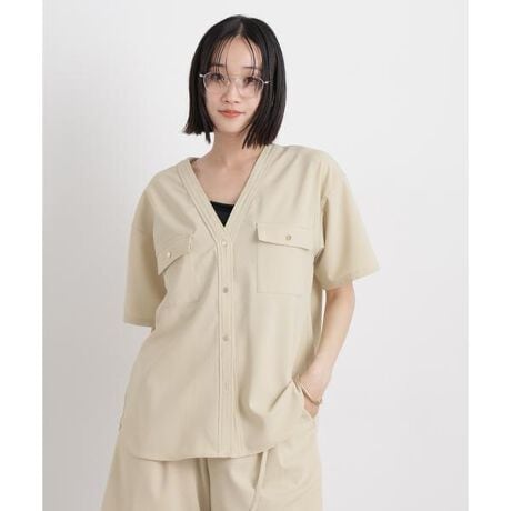 シンプルながらもこなれた雰囲気が漂う、上品なVネックブラウス。深めのVネックが顔まわりをすっきりと演出し、着るだけで洗練された印象に。前を開ければ半袖ジャケットのような着こなしも楽しめて、通勤から休日まで幅広いシーンで活躍する一枚です。