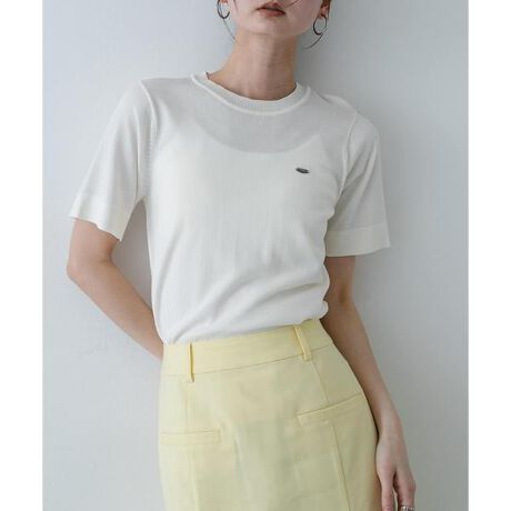 等身大の装いを瞬時に格上げしてくれる、主役級の半袖ニット。カジュアルなTシャツの機動力と、ニット特有の柔らかな風合いが融合し、自分らしい落ち着いたムードを演出してくれます。胸元の小さなプレートが光を拾い、アクセサリーいらずで顔周りを華やかに。ボトムスを選ばない汎用性の高さは、忙しい朝もこれ一枚で自分らしくスマートに決まる、ワードローブに欠かせない信頼の一着です。