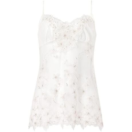 ・スカート部分には肌が透けるような美しいエンブロイダリーレースを使用優美なアジサイをイメージし、やさしく輝くラメ糸を散りばめたアップリケで、胸もとを贅沢にあしらった華やかなデザイン。ラインストーンが光る花々を重ね、繊細で奥行きのある印象に。スカートは裾まで広がる小花の刺繍に合わせてプリントをほどこすことで、お花が舞い落ちるような様子を演出します。透けた肌が美しく映える総レース仕様に仕上げました。●詳細情報パッド受けなし※お洗濯は、必ず「取扱い表示」にしたがってください。