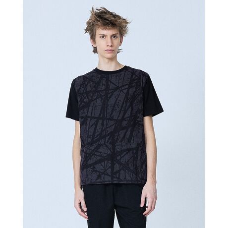 シーズンテーマ『クロスポイント』からインスパイアされたブロークンチェックのグラフィックを施したレイヤーTシャツ。異素材の組み合わせでフロントのデザインが主役になる一着です。グラフィックが同系色でプリントされているため、インナーで使用すれば、さりげないアクセントに。