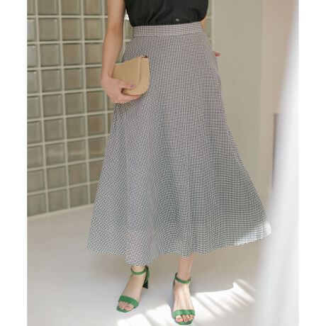 ■デザイン・軽やかな素材感とクリーンな雰囲気が上品さをさらに後押し。・素材の軽さでたっぷりとした分量感も重たくならない点もポイントです。・すっきりとした腰まわりと長めの着丈がウエストを美しく際立たせ、女性らしい印象を与えます。・脇によりフレアがたまるパターンにしているので他のフレアスカートとは一味違った仕上がりに。・後ろウエストはゴム仕様にしているので着心地の良さも◎。・歩くたびに揺れるシルエットがとにかく美しいスカート。・同素材のブラウスと合わせてワンピース風に着るのはもちろん、単品使いもしやすいアイテムです。
