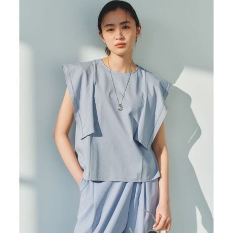 ■素材・表面はコットンのようなナチュラルな風合いでありながら、肌に触れる裏面にはポリエステルを使用したこだわりの二層構造素材です。・汗をかいても肌への張り付きやベタつきを抑え、サラッとしたドライな着心地をキープします。・ポリエステル繊維に鉱石粉末を練り込んだ糸を使用しすることでUV機能性も兼ね備えており、暑い季節も快適におしゃれを楽しめます。