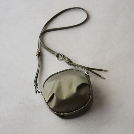 上品な光沢を持つ「クラウズナイロン」に、動きのあるタックデザインを施すことで、ミニマルながら存在感のある仕上がりに。