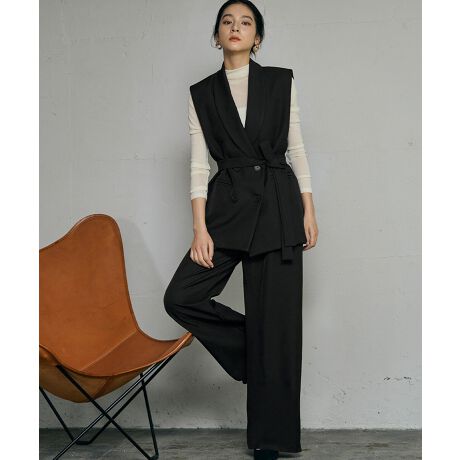 ジレ・インナー・ワイドパンツ・ベルトがセットになった、洗練されたセットアップ。