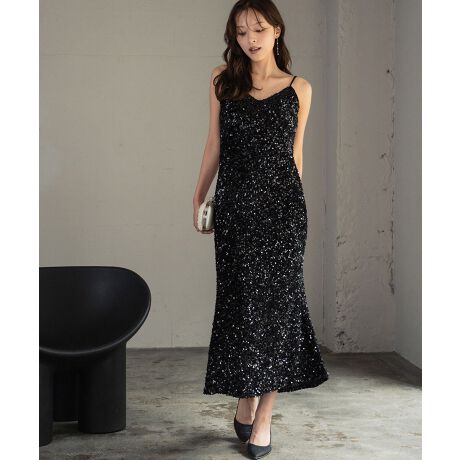 スパンコールロングマーメイドドレス パーティードレス 発表会 演奏会 お呼ばれ