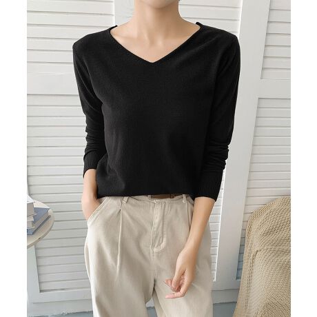 ベーシックなデザインで着回し力抜群の長袖ニット。