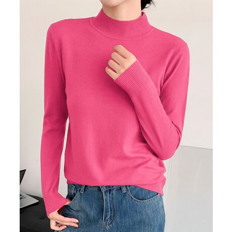 丸首デザインで首元をすっきり見せつつ、上着を羽織ってもかさばりにくい薄手の素材感です。