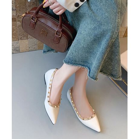 エナメル スタッズ ポインテッドトゥ フラット パンプス 歩きやすい