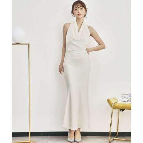 ホルターネックのナローライン風のドレス。