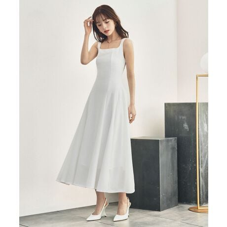 スクエアネックノースリーブロングドレス パーティードレス 発表会 演奏会 お呼ばれ