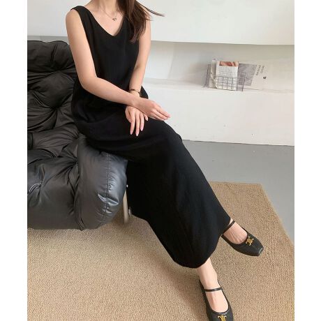リネンライクノースリーブロングワンピース