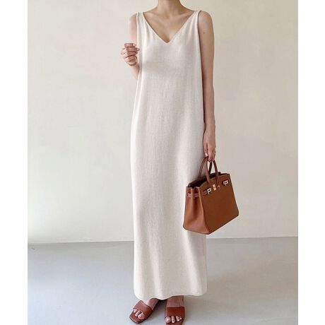 ノースリーブデザインで、さらりとした麻混レーヨン素材を使用し、軽やかで快適な着心地を実現しました。