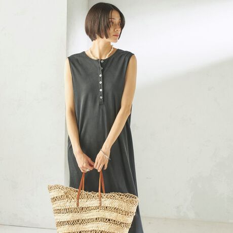 ジャージーのノースリーブロングワンピース。