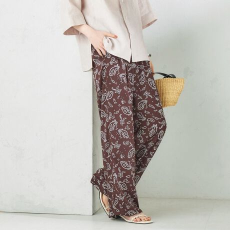 素材と柄の魅力を活かした、ミニマルなデザインのプリントパンツ。