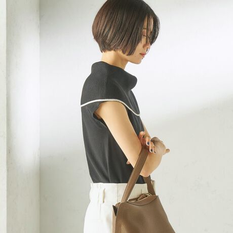 一見ノースリーブのように見えますが、きちんと袖がついていることでアームホールが隠れる仕様になっており、安心感のあるデザインです。