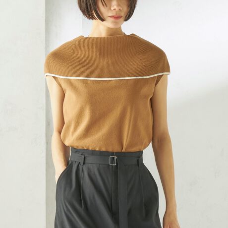 一見ノースリーブのように見えますが、きちんと袖がついていることでアームホールが隠れる仕様になっており、安心感のあるデザインです。