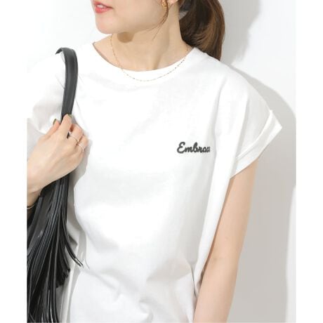 ◆チェーン刺繍がポイントのフレンチスリーブTEE。