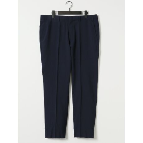 キチンと見えするルックスと楽ちんな穿き心地を兼ね備えた、ノータックのテーパードパンツです。ウエストストレッチで着脱もスムーズ、着席時も窮屈感がありません。センタープレス加工、前ボタン・ホック式、フロントファスナー、ベルト通し付き、前後ポケット付き、裾部分は加工済みです。(股下75cm・シングル仕上げ)