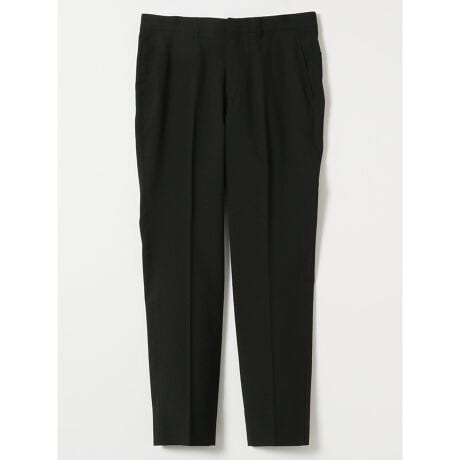 やや細身のスリムシルエットです。股上は浅めで、渡りは程よくスリム感があり、膝下から裾口にかけてテーパードを効かせています。