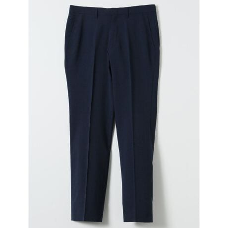 すっきりとしたノータックのテーパードパンツです。ウエストストレッチで着脱もスムーズ、着席時も窮屈感がありません。センタープレス加工、前ボタン・ホック式、フロントファスナー、ベルト通し付き、前後ポケット付き、裾部分は加工済みです。(股下75cm・シングル仕上げ)