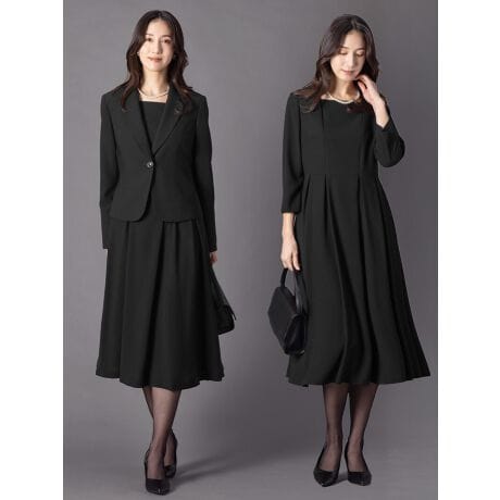 冠婚葬祭のマナーに沿った上品なブラックのアンサンブルセットです。