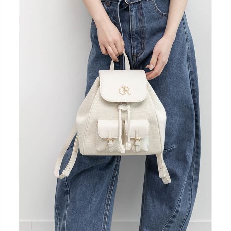 上品なツイード素材とスムース素材のコンビマテリアルがポイントのリュックバッグ。