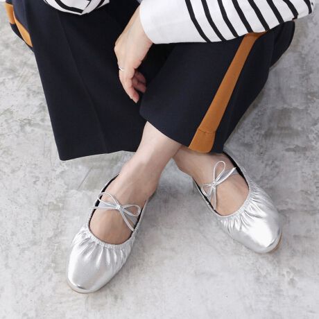 マルイウェブチャネル   /   フィン   /   シューズ   /   パンプス   /   【26春夏新作】ギャザーリボンフラットシューズ【低反発スポンジ入り】