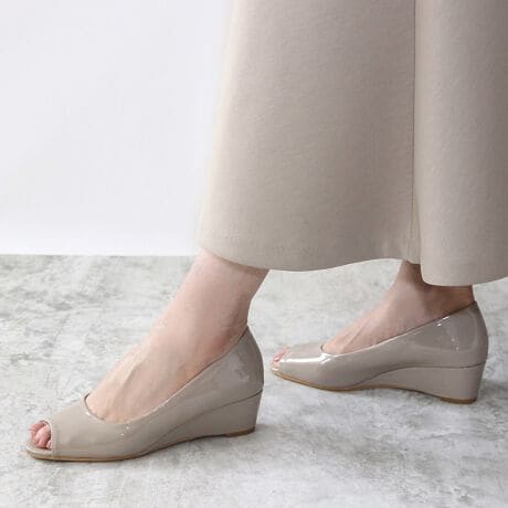 【26春夏新作】オープントゥエナメルウエッジパンプス【低反発スポンジ入り】