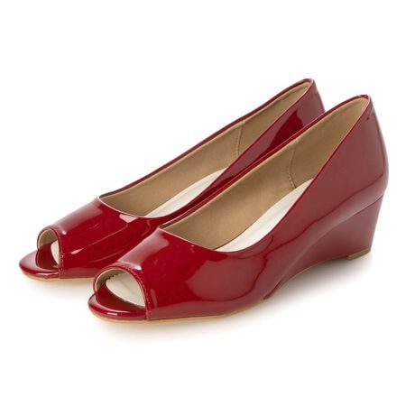 【26春夏新作】オープントゥエナメルウエッジパンプス【低反発スポンジ入り】