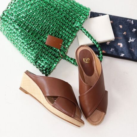 太めのクロスベルトが足元に程よい存在感をプラスするFin(フィン)のクロスベルトウエッジサンダルが登場しました。高級感のある素材の太めのクロスベルトは足をすっぽり包み込む安心感のある履き心地。シンプルなデザインですが計算されたフォルムですらっとした足元が叶う一足。