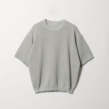 ポリエステル×リネンの清涼感のある糸を使用し、程よいシアー感と立体感のある編地に仕上げました。