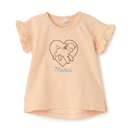 袖フリル刺しゅうTシャツ