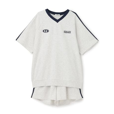 綿100%素材によるやさしい肌触りがうれしいセットアップです。ゆるっとしたシルエットなので着心地も快適! トップスは首元がスッキリ見えするVネックデザインです。シンプルな刺しゅうとバックプリントでおしゃれに仕上げました。ショートパンツはポケット&ウエストアジャスターつきで、デイリーに着回すことも可能。通学や宿泊学習はもちろん、おうちでのリラックスタイムにも重宝します。【おすすめの着用時期は春夏シーズン】