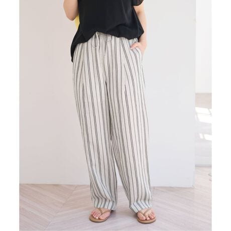 麻レーヨンにポリエステルをブレンドした、軽やかな平織素材のパンツ。