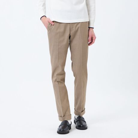 生地の構造により凹凸があり、吸水速乾、接触冷感性もあり夏場でも快適な着心地です。肌離れが良く爽やかな履き心地で、品が良くコーディネートしやすい単品カジュアルパンツです。