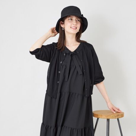 ギャザー入りのふんわりスリーブが華やかなショート丈カーディガン。